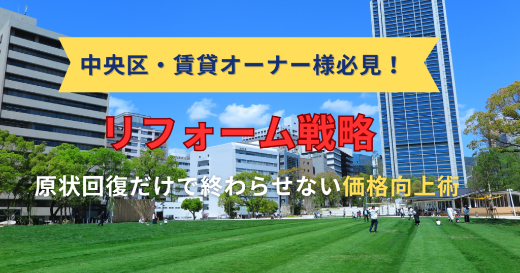 「築年数が経ってきて成約スピードが落ちてきた」「原状回復だけでは競合物件と差別化できない」「リフォームは気になるが、どこまでやるべきか判断できない」 中央区の賃貸マンションは、競争力の高いエリアである一方、築15〜20年を超えると“陳腐化”が急... -