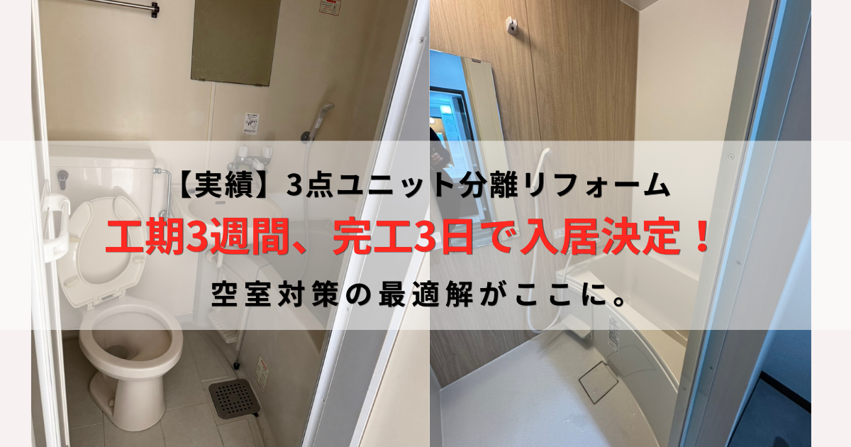【実録】空室対策の決定版!3点ユニット分離リフォームで、完工からわずか3日で入居が決まった理由